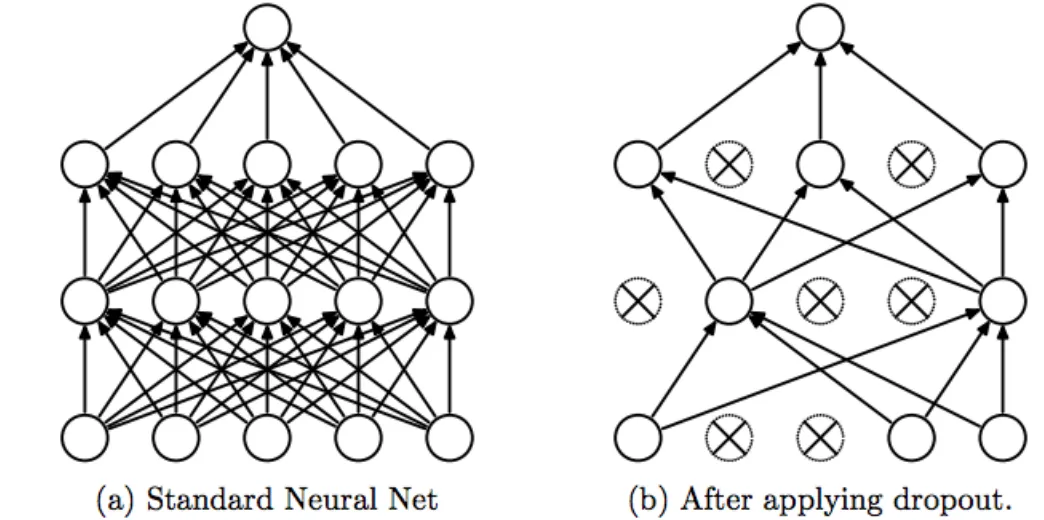 Another powerful regularization technique is Dropout [2], where we randomly set a fraction of neurons in a layer to zero during each forward pass. The dropout rate (probability of dropping a neuron) is a hyperparameter, typically set to 0.5.