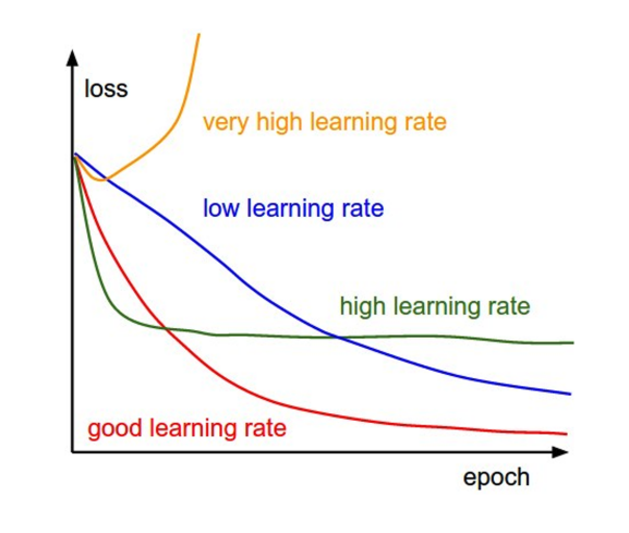 Different learning rates produce different learning behaviors, as shown in the figure below. Therefore, it’s essential to choose an appropriate learning rate, ideally the red one. However, finding that one “perfect” learning rate through trial and error is not always feasible.