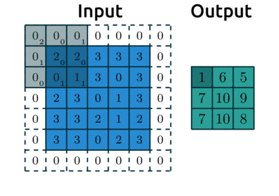 The image below shows a convolution operation with padding = 1 and stride = 2.