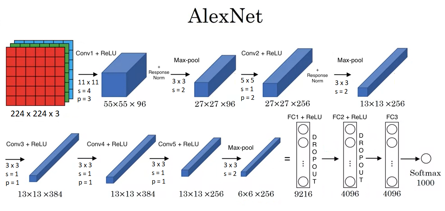 [1] Alex Krizhevsky, Ilya Sutskever, and Geoffrey Hinton, “ImageNet Classification with Deep Convolutional Neural Networks”, NeurIPS 2012.