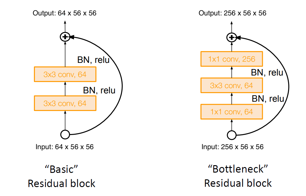Basic residual block: $2 * [(64 \times 56 \times 56) * (64 \times 3 \times 3)]$ = $0.24$ GFLOPs.