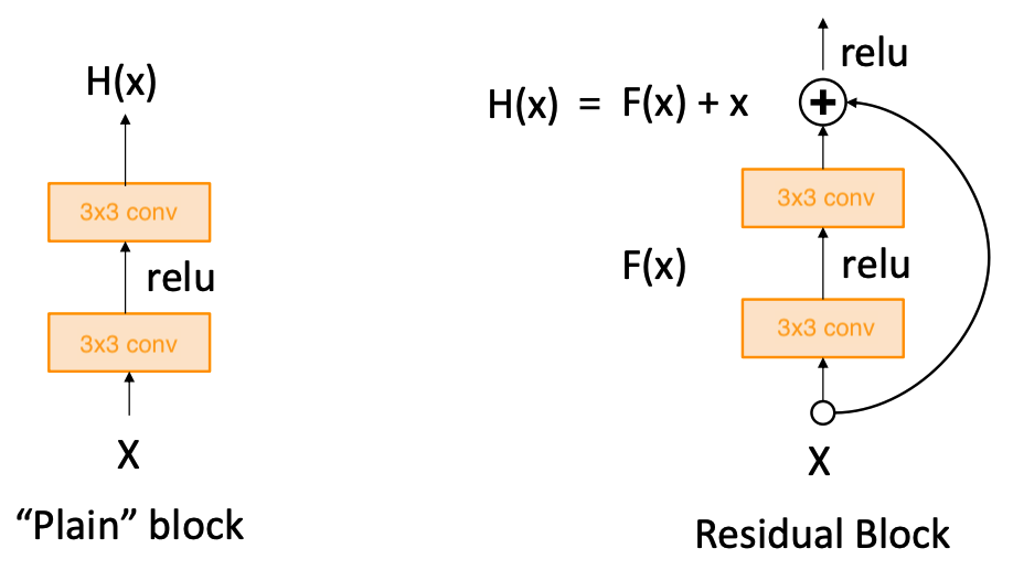 To address this, ResNet [4] introduced a new network design that simplifies learning identity mappings. If we let the stacked non-linear layers fit a mapping $\text{F(x)}$ for an input $\text{x}$, we can add a skip connection to recasted the original mapping to $\text{F(x) + x}$.